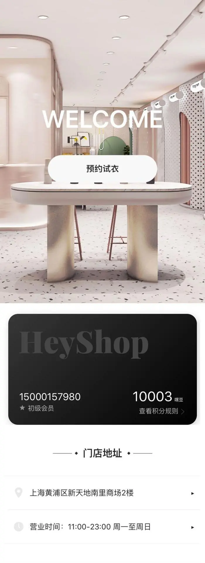 下滑则可以看到会员卡信息,以及门店地址。