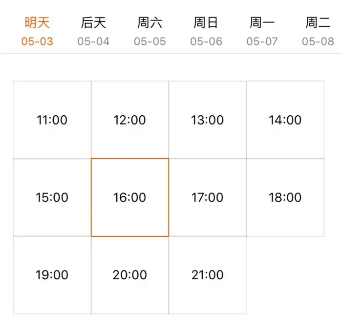 将想要试穿的衣服加入预约清单后,可以选择一个星期内的相应时间段进行试衣间预定。