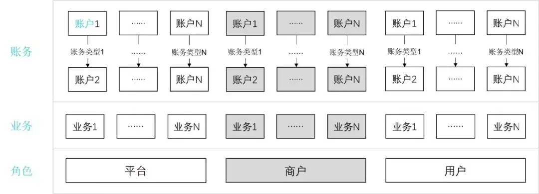 如果这里面涉及到的角色关系比较多,对于一个角色而言可能会涉及多笔账务,那么一笔支付订单会对应多笔支付账务。
