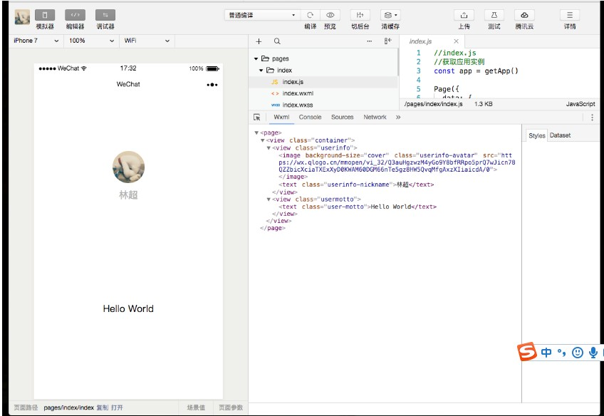 - 界面写好后为了好看点就可以在wxss中去写样式,别忘了js文件中的内容