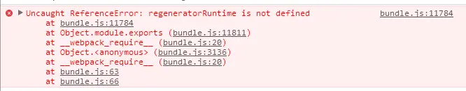 执行打包命令,打包出来的bundle.js的大小为63K,比完整引入polyfill小了好多。但是事物都有两面性,babel-runtime有个缺点,它不模拟实例方法,即内置对象原型上的方法,所以类似Array.prototype.find,你通过babel-runtime是无法使用的,这只能通过 babel-polyfill 来转码,因为 babel-polyfill 是直接在原型链上增加方法。这就悲催了,难道还是要完整引入babel-polyfill?其实还有一个解决的办法,就是用babel-preset-env