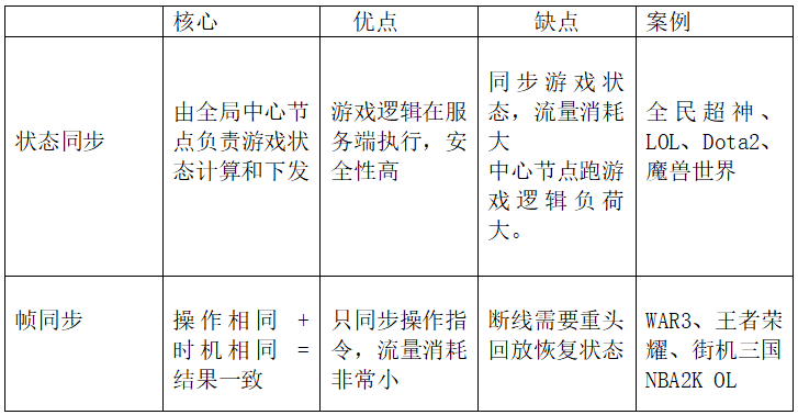 网络游戏中通过同步机制来保证各个客户端游戏世界的一致性,主流的同步机制有两种:1 状态同步; 2帧同步。状态同步是指:由客户端负责将玩家的操作发往中心节点 (服务器或master客户端),由中心节点来负责游戏逻辑计算并将计算结果广播给客户端,再由客户端负责渲染游戏结果。而帧同步的理论基础是:游戏逻辑由操作指令驱动,只要操作序列一致,那么游戏结果就应该一致。