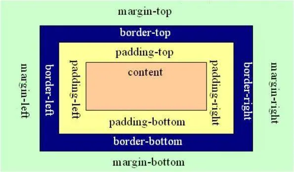 CSS盒模型由内而外依次是元素内容(content)、内边矩(padding-top、padding-right、padding- bottom、padding-left)、边框(border-top、border-right、border-bottom、border- left)和外边距(marging-top、margin-right、margin-bottom、margin-left)。