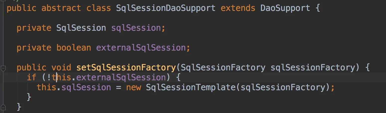 首先,解析转化参数为Map键值对的参数,如果没有RowBoud这个参数,就直接执行sqlSession.selectList方法,这里command的name就类全名+方法名,这里的sqlSession是SqlSessionTemplate的实例,这个是在下面的这个代码注入的