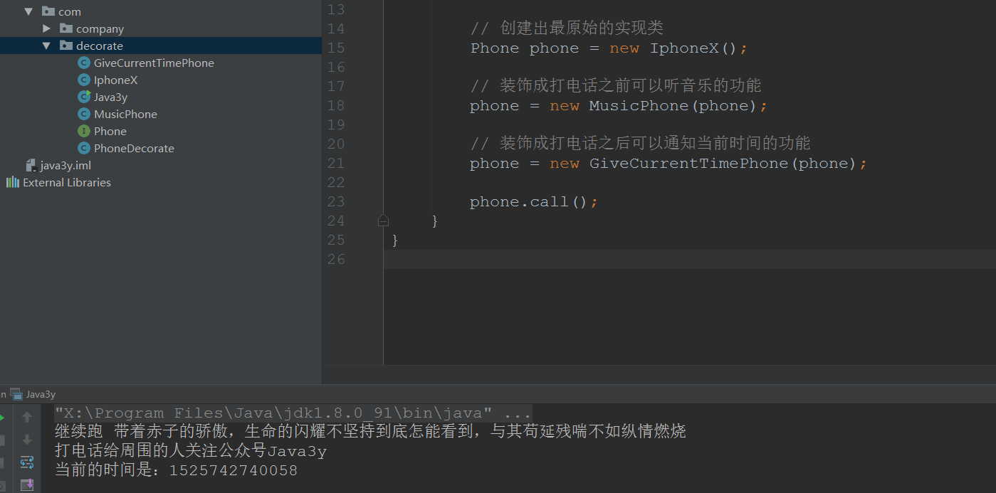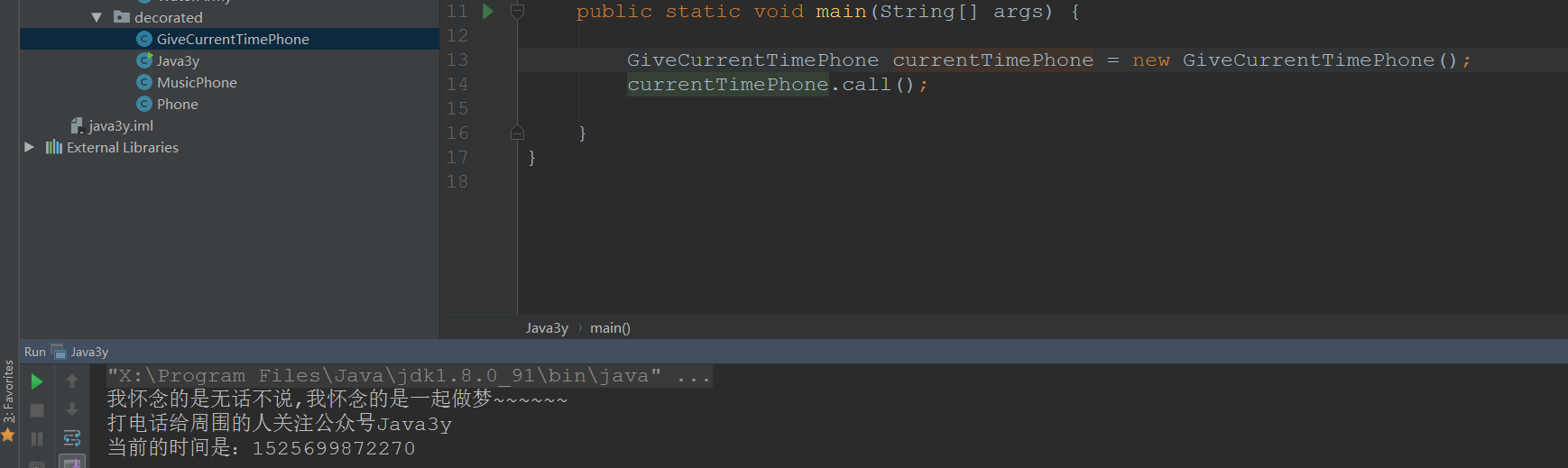 现在我也想在打完电话后通知当前的时间,于是我们也继承装饰类来扩展: