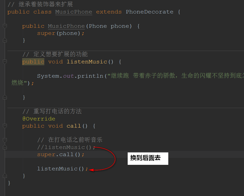 此时,我想打电话之前能听彩铃,于是我继承Phone类,实现我想要的功能。