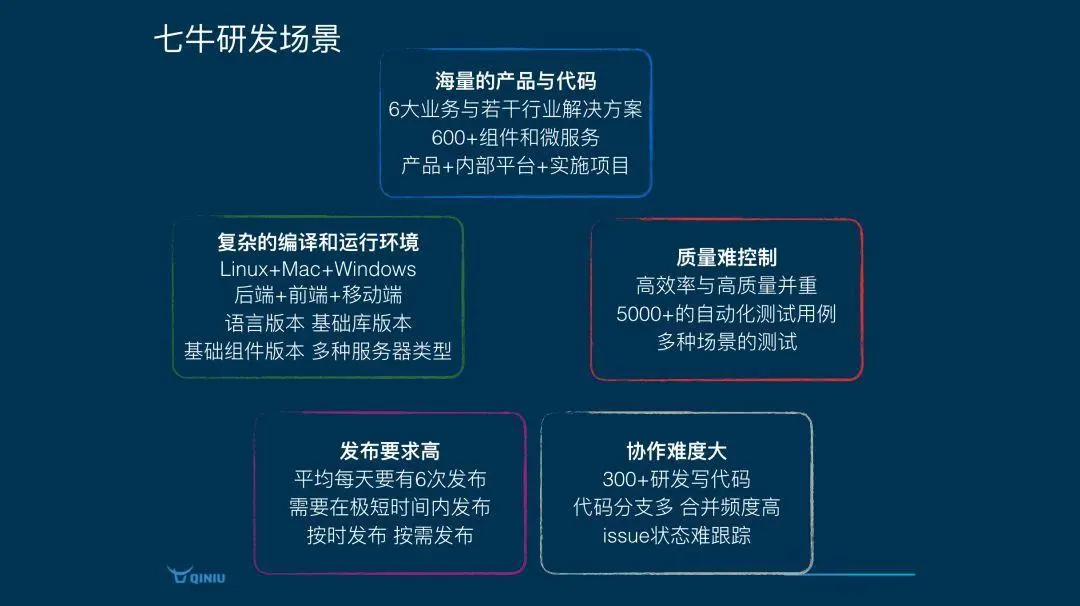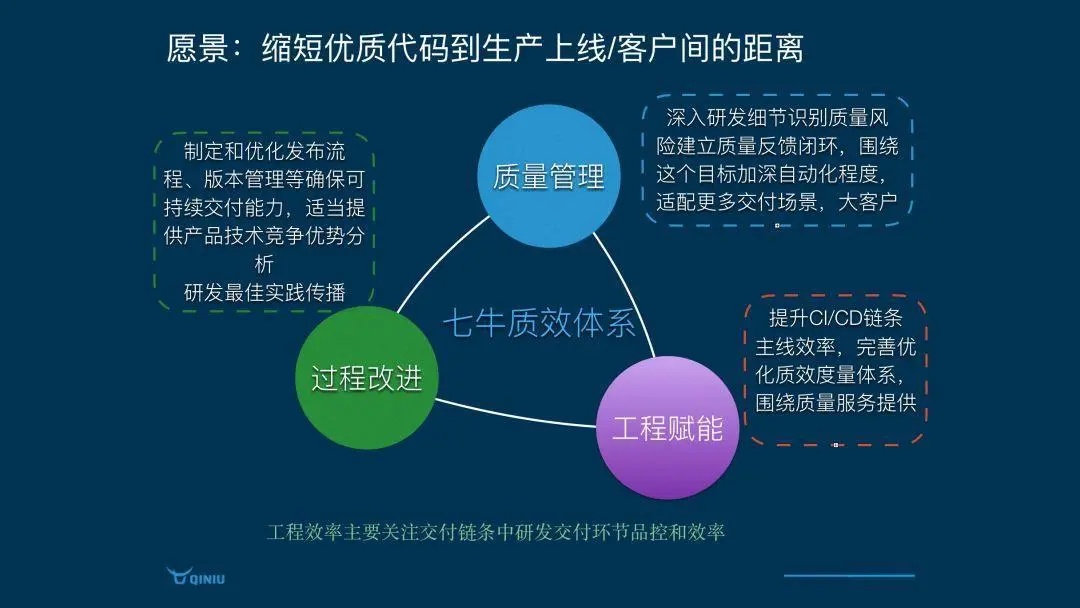 七牛云从最初发展到现在已经七年了,目前有 300 多名研发同学、六大业务线:云存储、CDN、直播云、容器云、大数据、以及人工智能实验室。而在七牛云优秀的产品研发团队身边,还存在着一个负责质量管理、工程赋能、以及过程改进的重要部门——七牛云工程效率部。