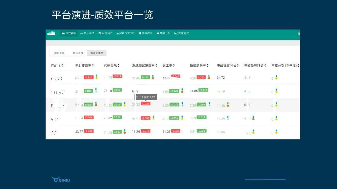 这是我们质效平台的后台,这是其中的几个指标,里面有冠、亚军之分,是一种激励和评比。我认为,没有对比就没有伤害,没有对比也就没有进步。我们会把一些关键指标量化,也会相应推出奖励措施。但并不是奖励冠军,我们会按照各团队的成长速度进行奖励。