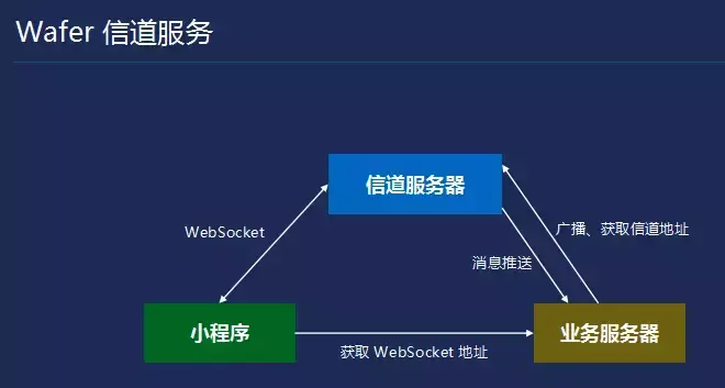Wafer 的信道服务是由腾讯云提供的一个 PaaS 级的 websocket 服务。利用信道通信技术,可以实现小程序与服务器之间的信息互动和传输。腾讯云信道通信技术可以使当前的用户直接跟信道服务器直接建立 websocket 链接,业务服务器只用处理 http 请求而不需要关心 websocket 信息。