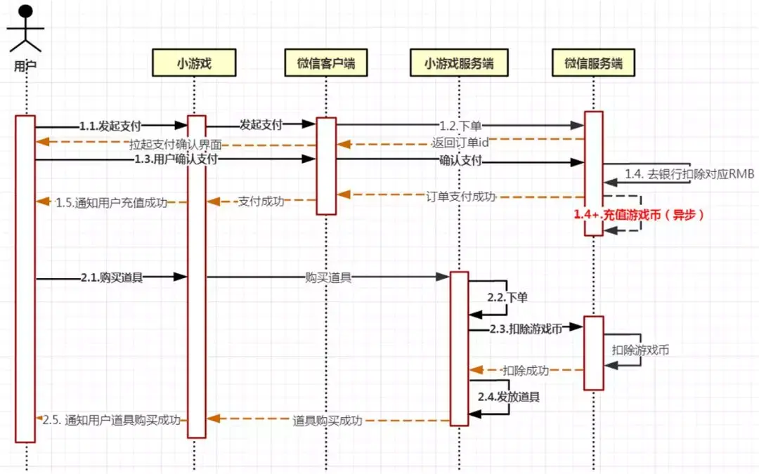 - 使用游戏币购买道具:开发者可以扣除对应的游戏币,给用户发放游戏内道具,扣除游戏币的过程需要有一定的事务机制,去保证在网络异常的情况下交易正常。扣除游戏币的接口支持根据订单 id去重,意味着网络超时等情况下,开发者可用同样的订单 id去重试扣除,直至返回明确的响应。