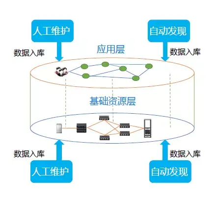CMDB架构分基础资源层架构和应用资源层架构。应用层资源架构把相关的资源以应用为中心实现资源整合。资源及其资源的关系称之为拓扑(应用拓扑、物理拓扑),资源管理方式有人工维护和自动发现两种方式,流程是人工维护的一种复杂场景和手段。