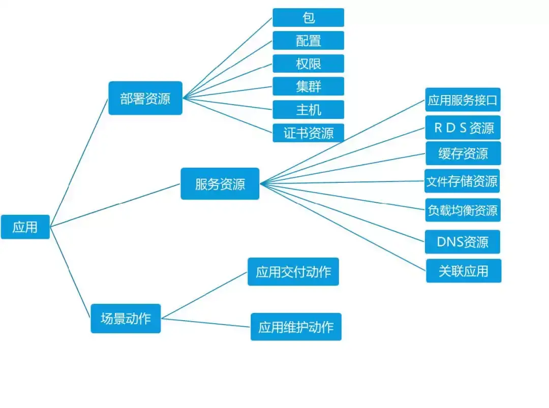 应用CMDB是面向资源的完整描述,应用的资源分成应用的部署资源、服务资源和动作资源。
