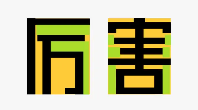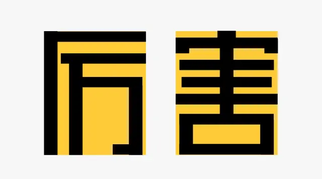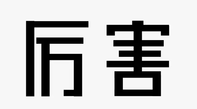 在做字体设计时,我也会将设计好的基础字体加一个隐形的矩形,例如下面“厉害”两个字: