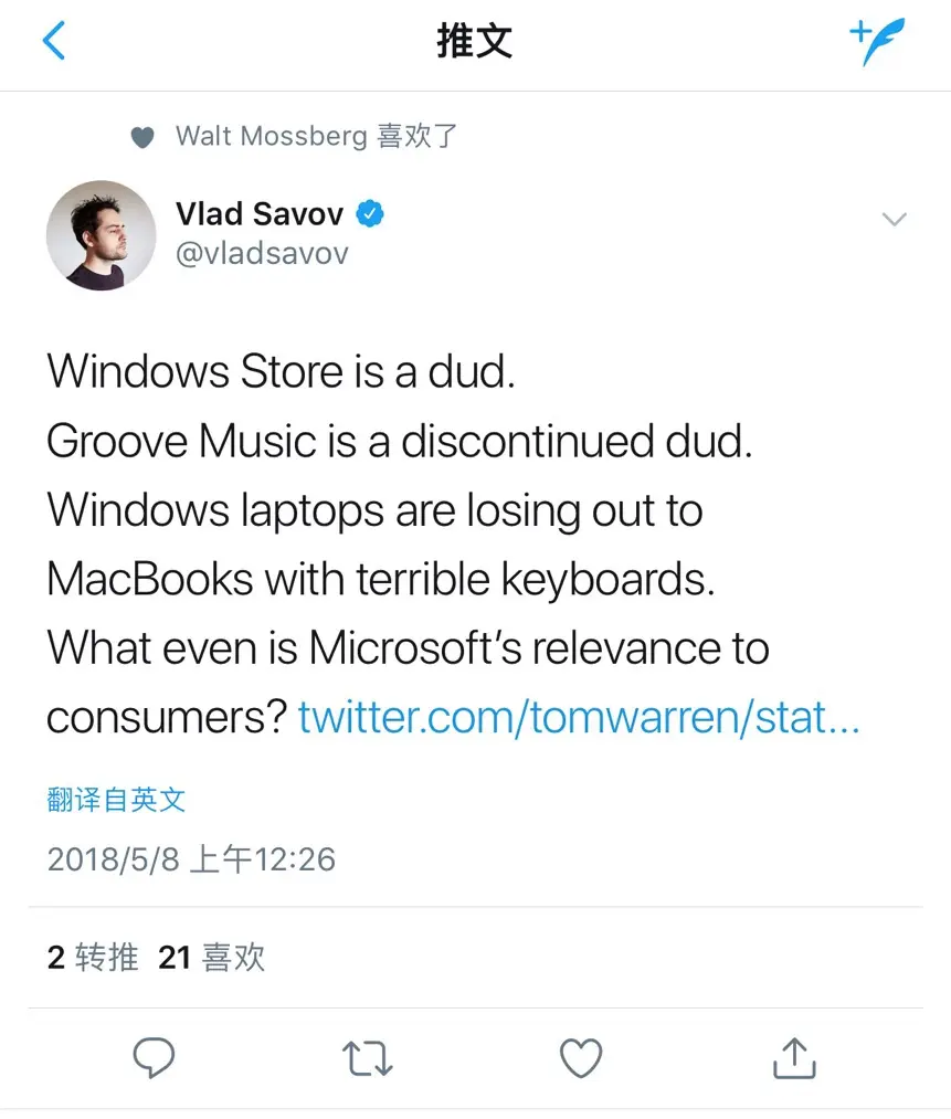 在 Keynote 环节将要结束的时候,一位科技记者忍不住在推特上发问:「Windows 商店没做起来,Groove Music 彻底死了,Windows 笔记本还不如键盘有问题的 MacBook,微软现在和消费者还有什么关系呢?」