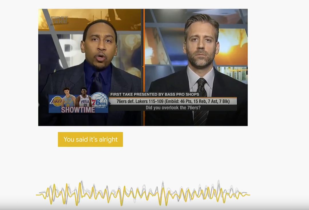 在针对近用性部分,他提了一个例子,当电视播放多人谈话时,字幕表现往往不佳。Google 正试图通过隐藏式字幕和机器学习来解决字幕问题,例如即使在有多人讲话、甚至大吼大叫的对谈节目也能辨别谁在说话,并生成字幕。