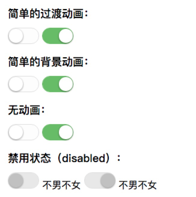 完整的单选框 radio ,多选框 checkbox 和 switch 开关 demo示例:www.css88.com/demo/beauti…