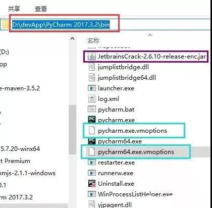 并且在两个文件后追加 -javaagent:D:devAppPyCharm 2017.3.2inJetbrainsCrack-2.6.10-release-enc.jar