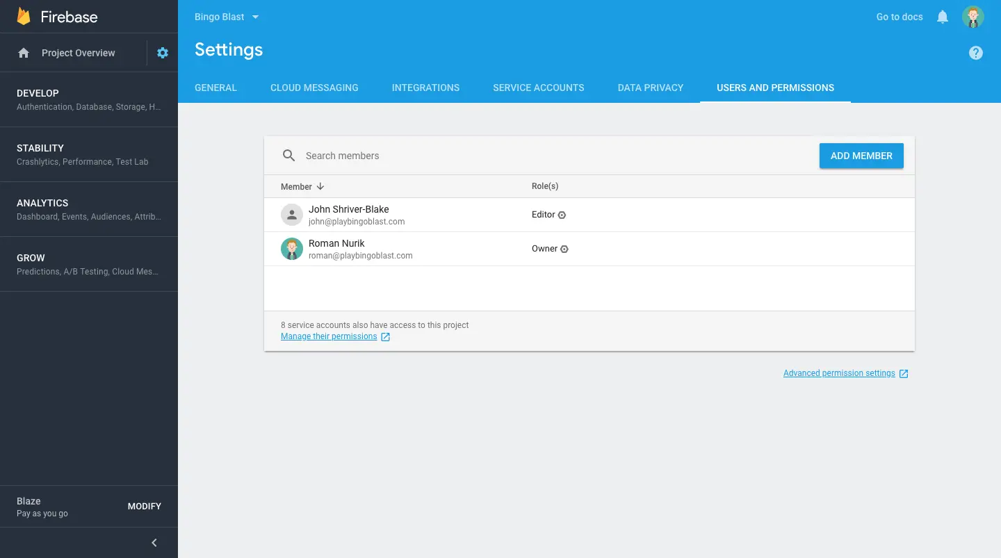 我们今天对于 Firebase 控制台的另外一个更新是:改进了身份和访问权限管理。这可以让你轻松的邀请其他人到你的项目进行协作,并控制他们有权访问的内容。所有内容均在 Firebase 控制台中完成。