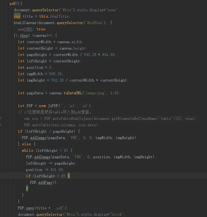 在vue中实现html转换成pdf,并且解决图片跨域传输问题 Andy 2018-05-09 2,311 阅读1分钟 由于工作的需要,前几天在项目中遇到一个奇葩问题,需要把html转换成pdf格式输出,当然结合使用的有富文本编辑器,也是结合vue常使用的vue-quill-editor,上传本地图片没有任何问题,但是如何从其他服务器获取的图片url,生成pdf时,总会出现图片跨域传输问题。 思考尝试了几天后,终于找到了解决方案,在html2canvas中,设置属性useCORS: true,竟然完美的解决了具体代码如下:若有问题,欢迎评论