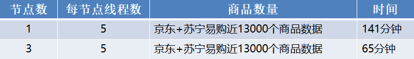 可以看到,当使用 3 个节点时,时间并不会相应地缩小为原来的 1/3,这是因为此时影响爬虫性能的问题主要是网络问题,节点数量多,线程数量大,网络请求也多。