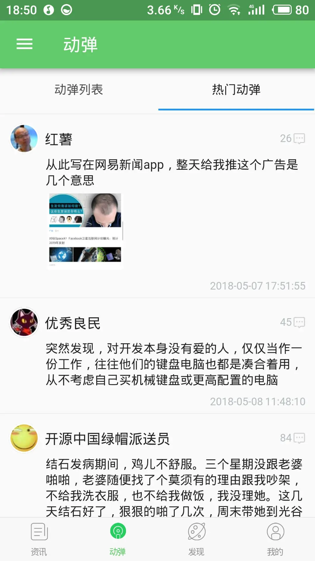 - 受开源中国openapi的限制,获取动弹数据需要登录,由于openapi的资讯接口提供的数据比较简单,故资讯部分采用python爬取的网页数据