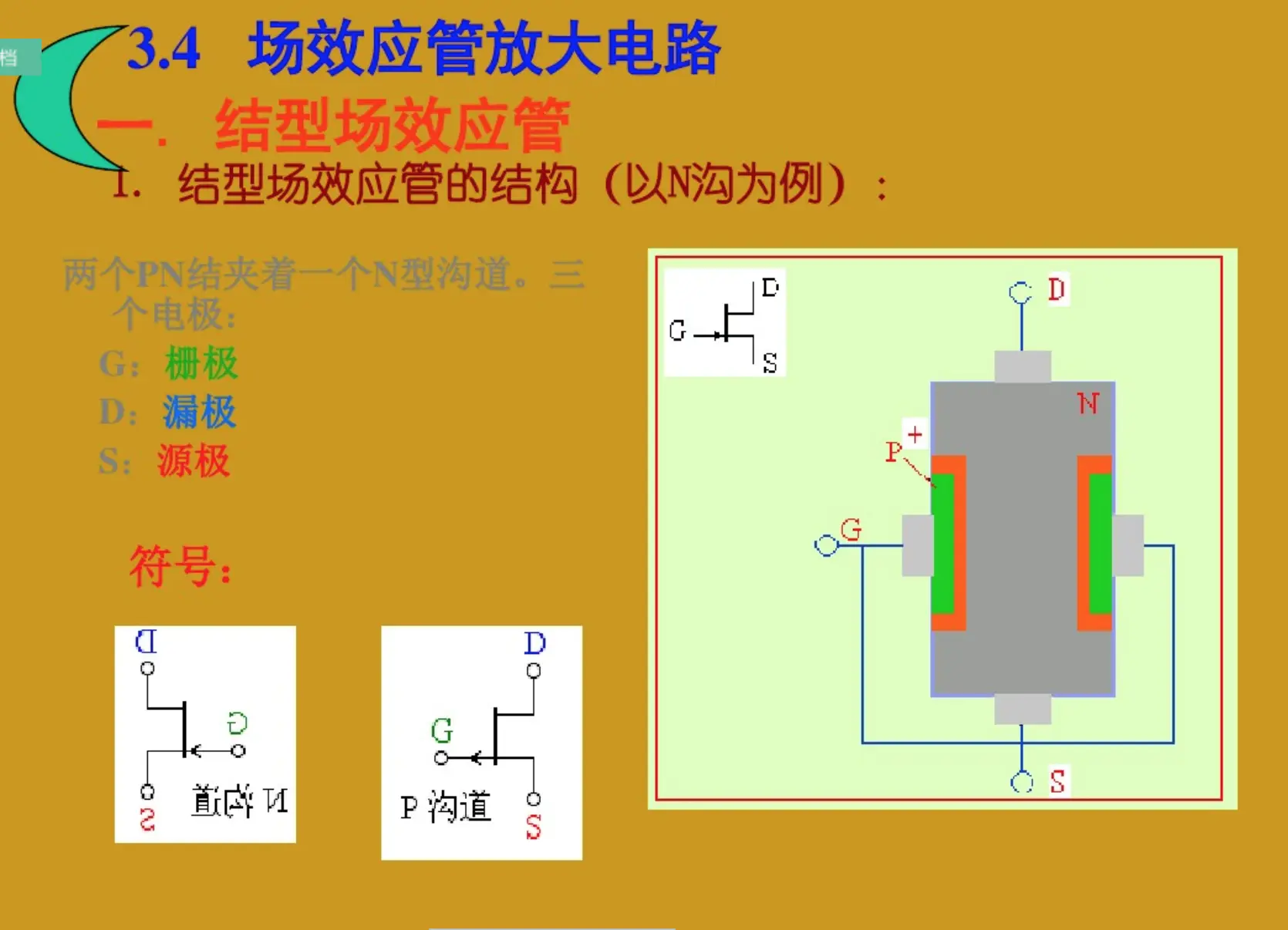 G 栅极通过控制电压,控制 P 沟道的载流子,从而控制 PN 结的宽度,参考:场效应管及其放大电路