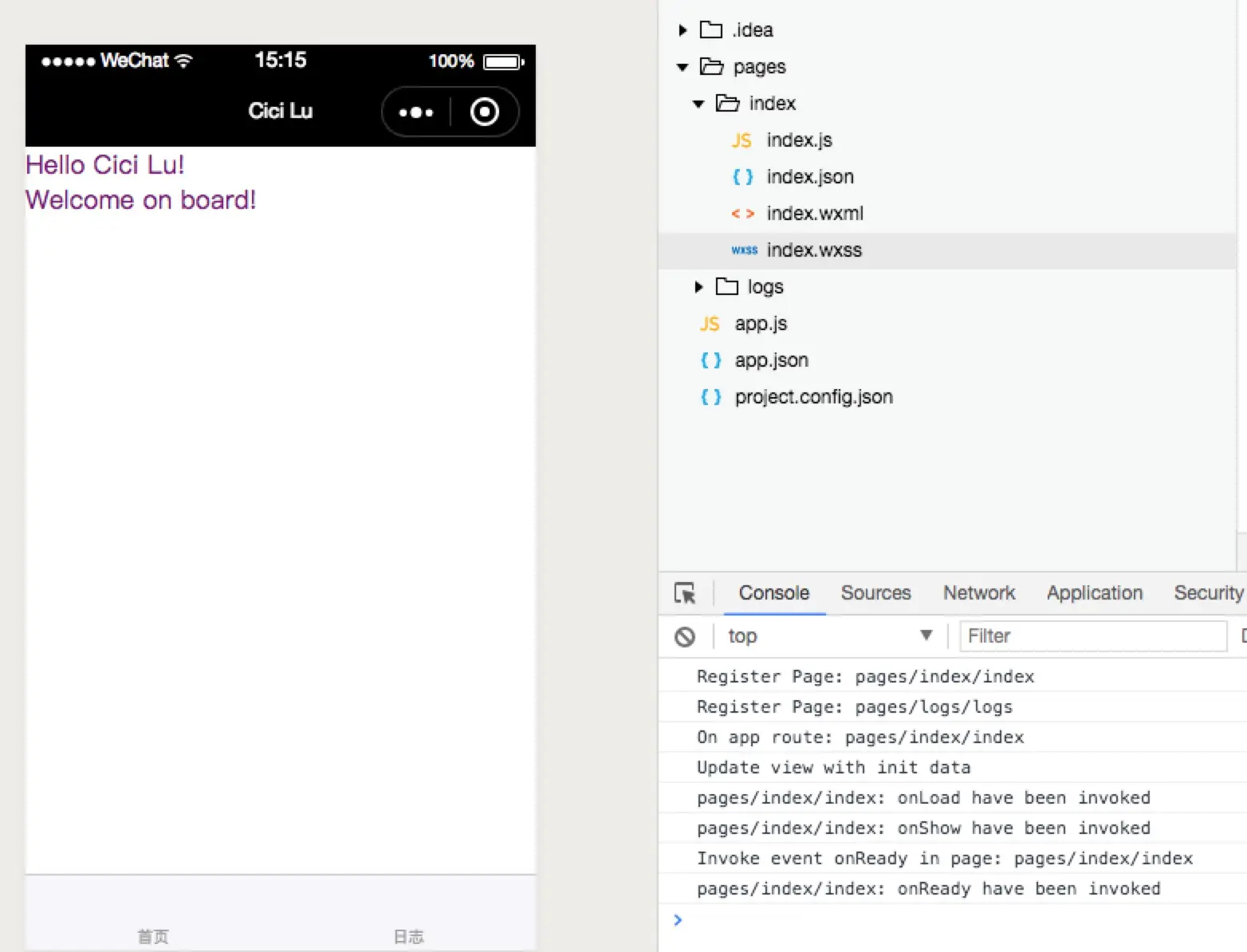 终于,什么报错也没有了,赶紧在index.wxml写了个hello world: