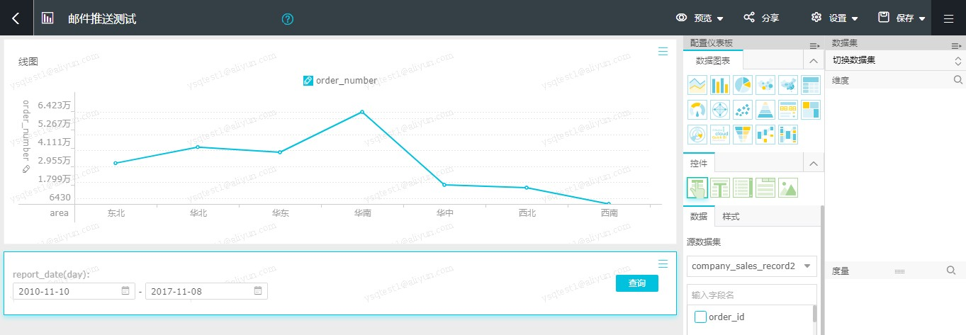 如下图为当前登录者设置行级权限,则邮件推送仪表板截图基于此权限展示:
