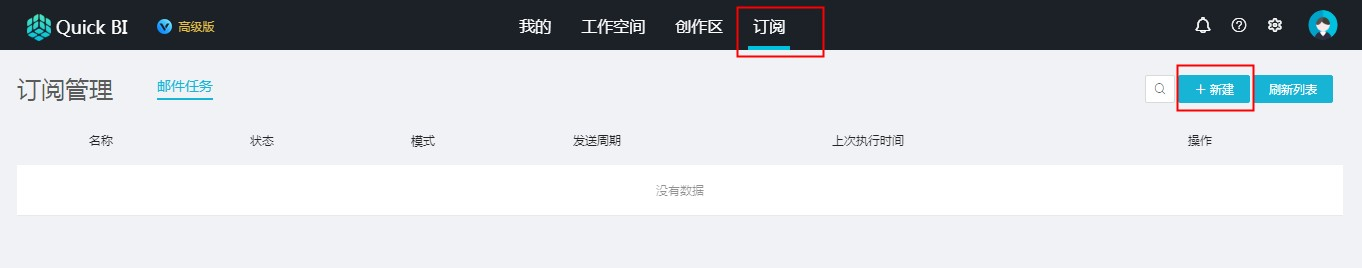 按照 主导航栏-订阅-新建 路径新建邮件任务: