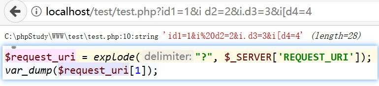 第二次输出$_REQUEST会输出user_id=select&user.id=123是因为$_SERVER['REQUEST_URI']并不会对特殊的符号进行替换,因此所有的参数均不会变化,所有的参数都会原样输出。