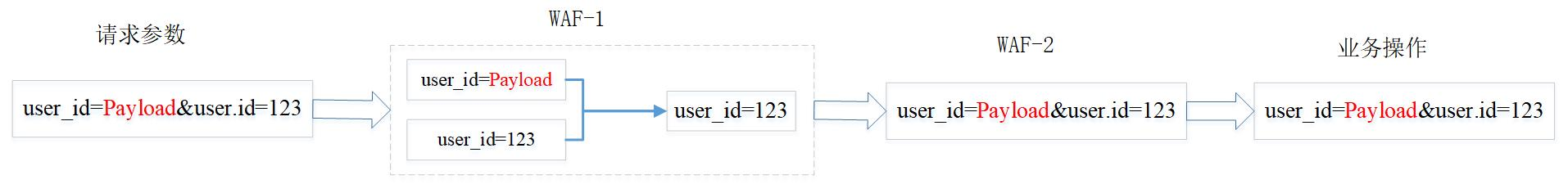user_id=payload&user.id=123 - 在经过第一个WAF时,由于