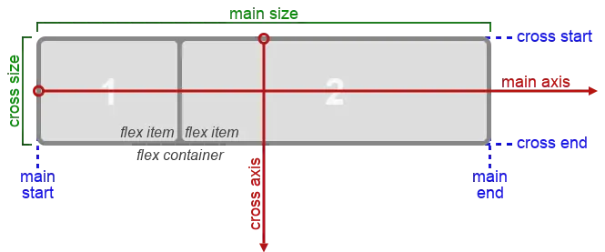 基本上,子项将沿着主轴(main axis,从 main-start 到 main-end)或者交叉轴(cross axis,从 cross-start 到 cross-end)二者之一排列。