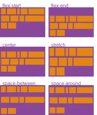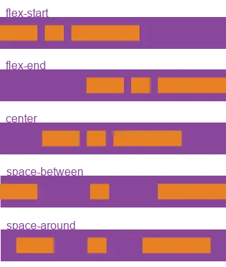justify-content: flex-start | flex-end | center | space-between | space-around;