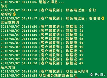 输入消息,结果类似下图: