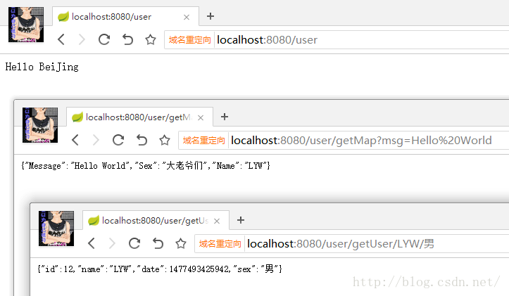 - @RequestMapping(value = "/getUser/{name}/{sex}")