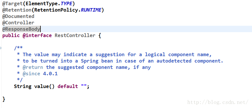 @RestController注解:看看源码 其实就是 又封装了一层 将@Controller和@RsponseBody两个注解合在一起