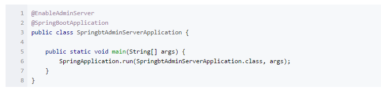 然后在应用主类上通过加注解来启用Spring Boot Admin
