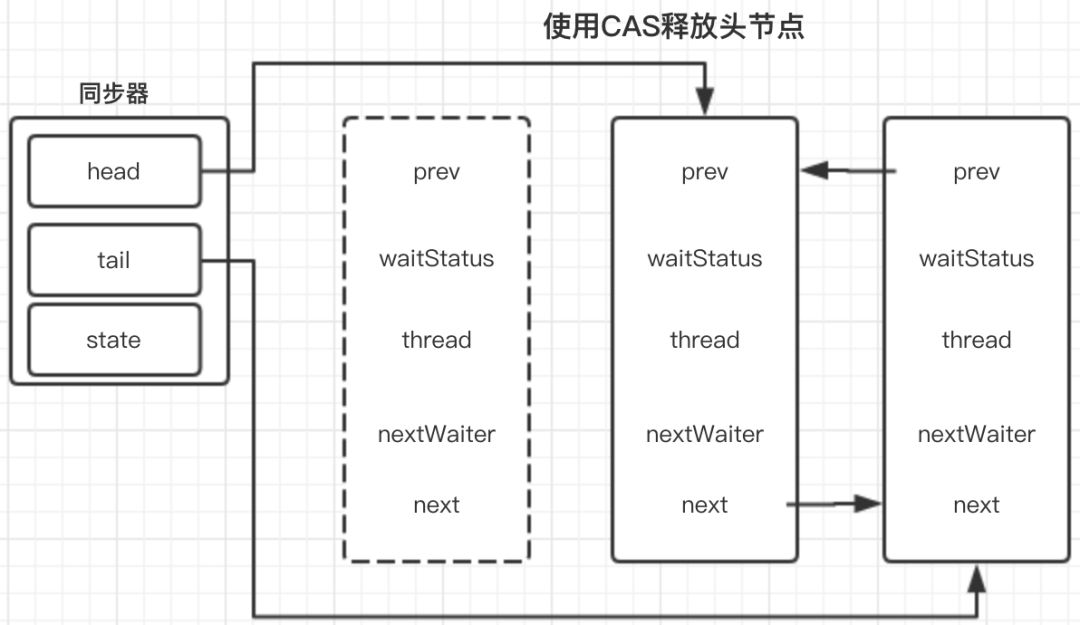 AQS通过内部实现的FIFO同步等待队列来完成资源获取线程的等待工作,如果当前线程获取资源失败,AQS则会将当前线程以及等待状态等信息构造成一个Node结构的节点,并将其加入等待队列中,同时会阻塞当前线程;当其它获取到资源的线程释放持有的资源时,则会把等待队列节点中的线程唤醒,使其再次尝试获取对应资源。