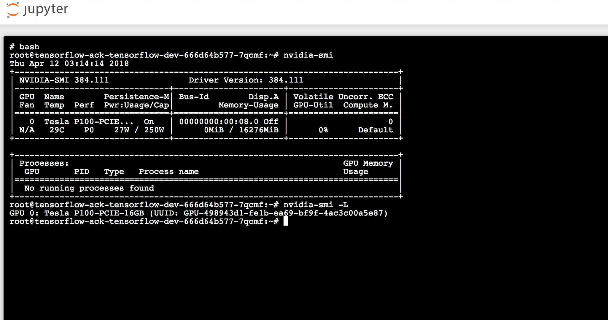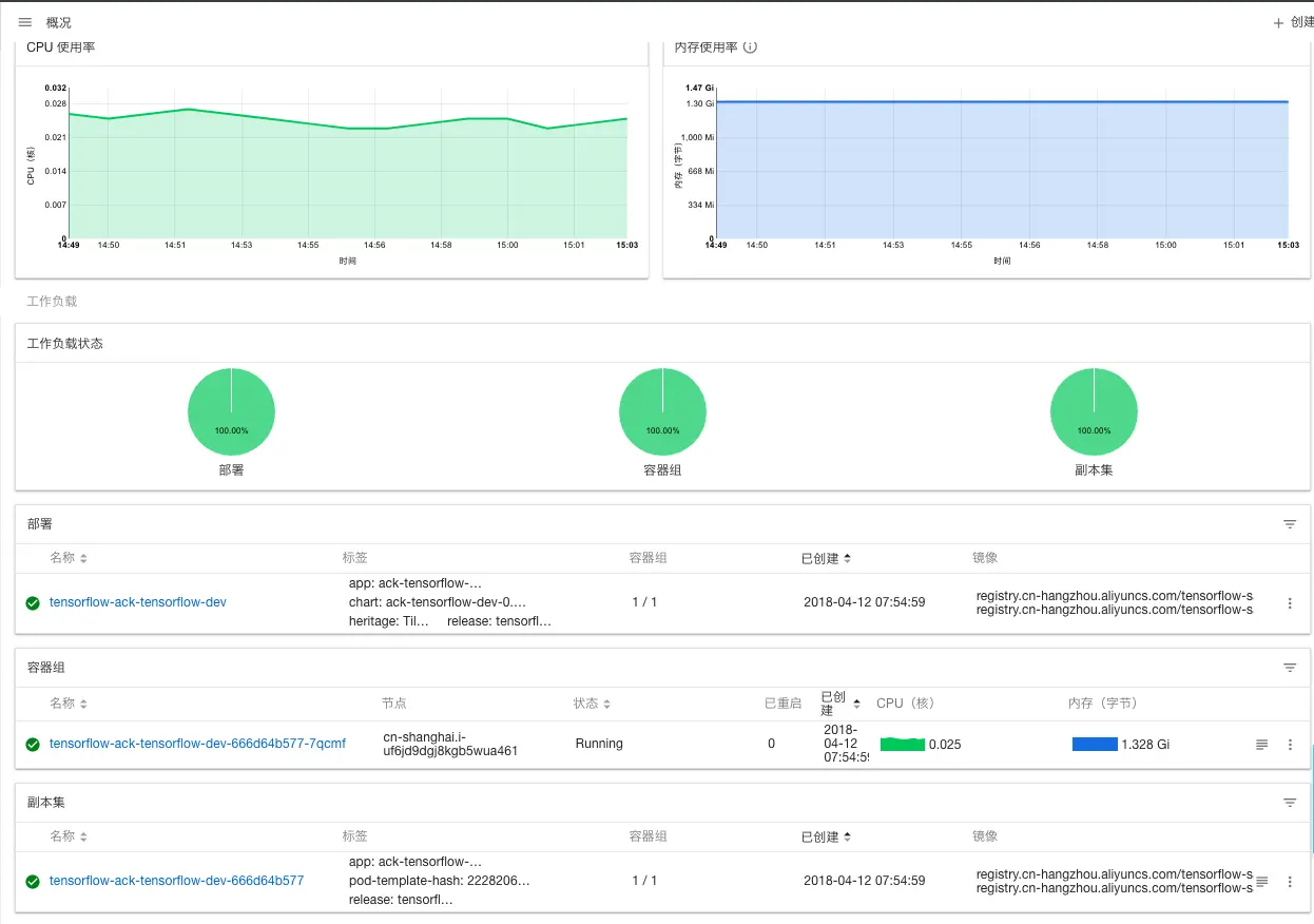 tensorflow 1 Thu Apr 12 07:54:59 2018 DEPLOYED ack-tensorflow-dev-0.1.0 default2. 利用helm status检查应用配置