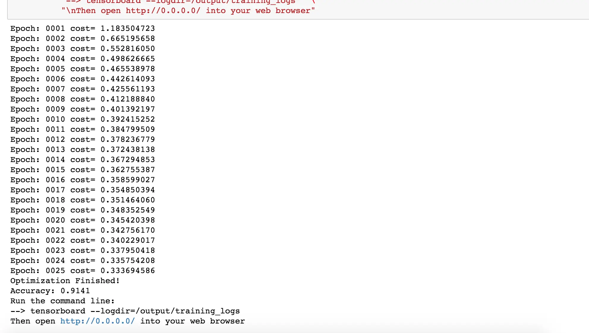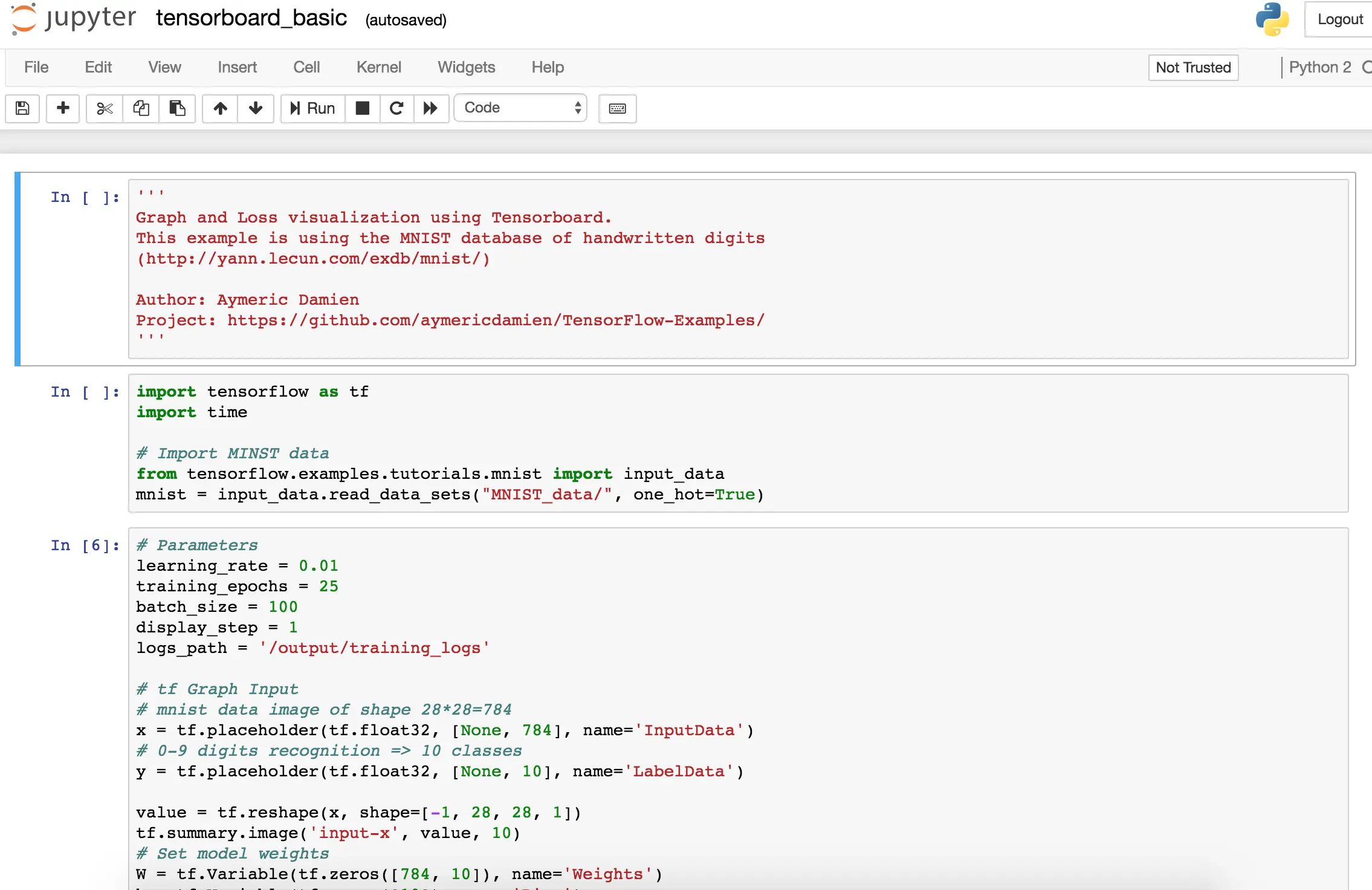 8. 进入到 http://10.0.0.1/notebooks/Tensorflow-Examples/notebooks/4_Utils/tensorboard_basic.ipynb, 运行程序