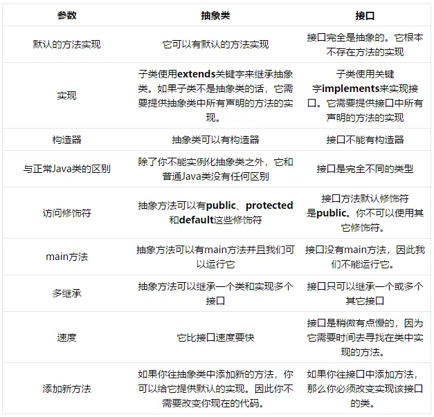 5)抽象类和接口的区别有哪些?