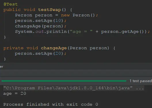 我们自己定义了一个内部类 Person ,该类只有一个 int 类型的 age 属性,然后有 getter/setter ,我们希望通过 changeAge() 函数来改变 Person 对象的 age 属性,为什么这次成功了呢?
