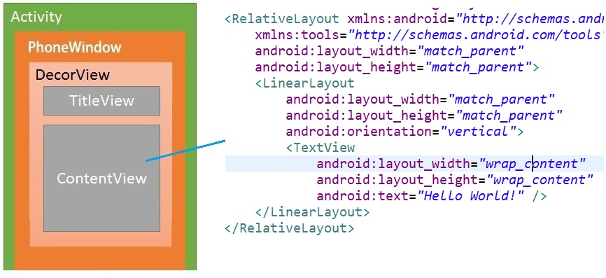 以上面的示例布局为例:如果没有给ReativeLayout,LinearLayout,TextView设置监听器。点击TextView产生Down事件,交到TextView手上执行onTouchEvent()方法时,clickable结果为false。TextView未能消费事件,事件由LinearLayout处理时也未能消费,RelativeLayout结果一样。最后由Activity处理,后续事件都不会再向下传递,会在Activity,window,DecorView之间来回打滚传递。