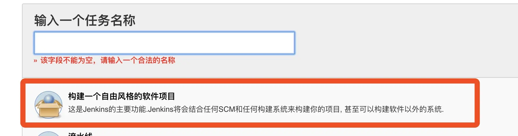 接下来就是重点了。我们在新建任务的时候选择“构建一个自由风格的软件项目”