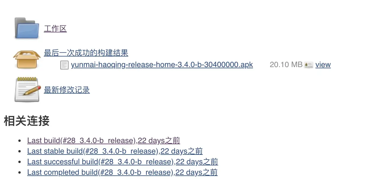 在构建项目的首页会列出我们构建后的成果(apk),但是这需要我们配置一下成果的路径。