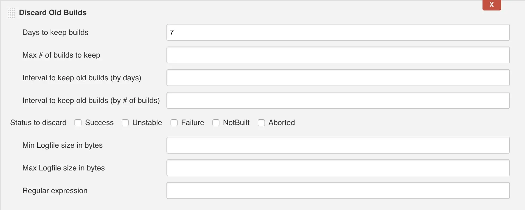 这里我选择了保留7天内的构建。详细可查看插件说明:Discard Old Build
