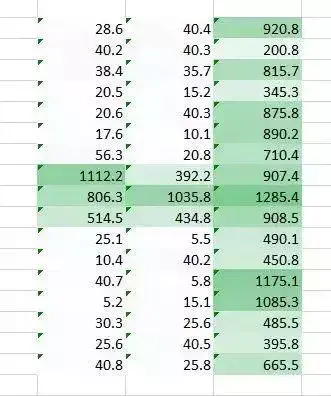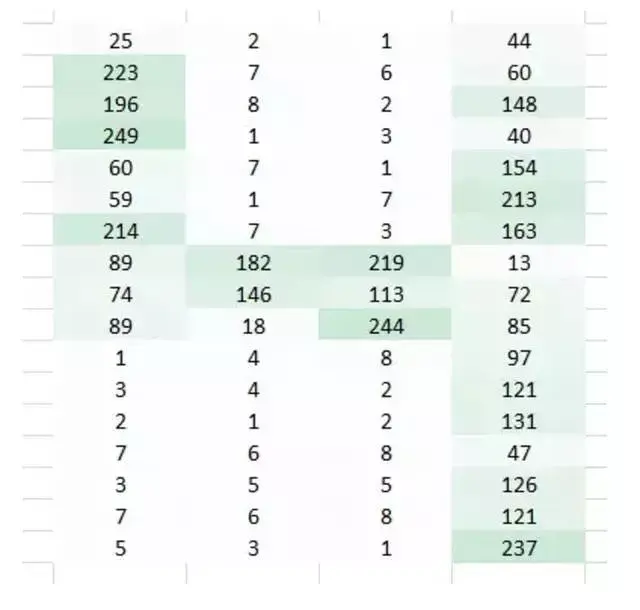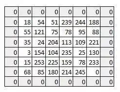 基本上,机器会把图像打碎成像素矩阵,存储每个表示位置像素的颜色码。在下图的表示中,数值 1 是白色,256 是最深的绿色(为了简化,我们示例限制到了一种颜色)。