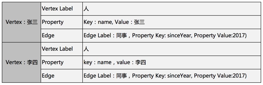张三与李四是同事关系,他们从2017年开始成为同事,用属性图表达: