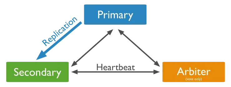 可以在副本集中添加一个额外的mongod实例作为仲裁者。仲裁者不维护数据集,它的主要功能是维护节点间的心跳和响应其他副本集成员的请求。因为仲裁者不维护数据,因此和一个完整节点相比,占用的资源会更少。如果副本集中节点数量是偶数,添加一个仲裁者可以在主节点的选举中添加多数选票的能力。