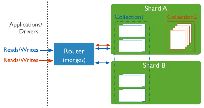 MongoDB在分片集群中,将读和写的负载分配到各个节点中,允许每个shard处理集群操作的一个子集。可以通过添加更多的shard横向扩展这种读写能力。